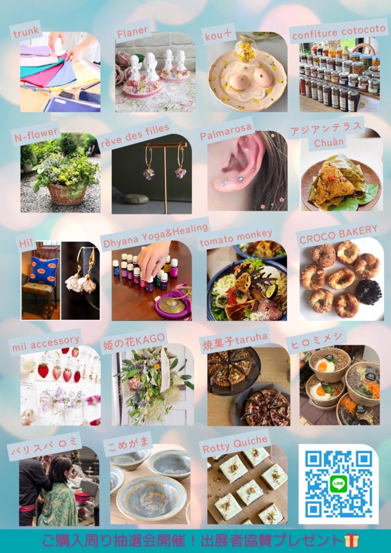 美味しいもの、ハンドメイド作品、グリーン・お花の販売、