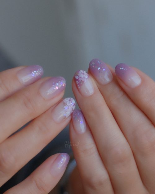 ラメやホイルの輝きが、光を受けて涼しげに煌めきます。
